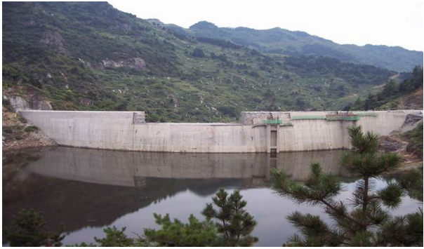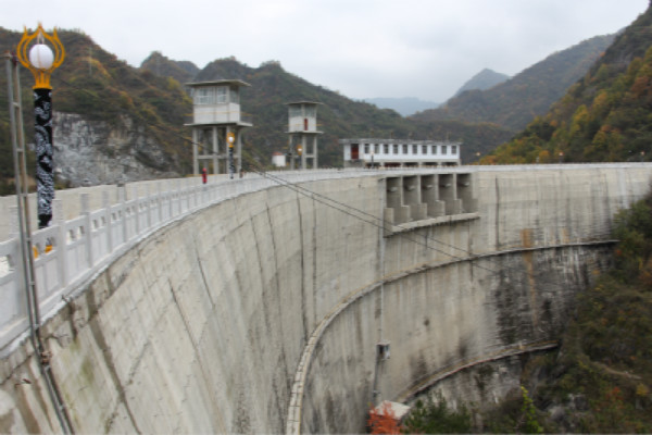 該工程位于勉縣二道河鄉(xiāng)褒河支流沙溝河中段,壩頂寬4.0m、底寬16m、壩高55m、壩頂弧長220.78m,為變三心雙曲拱壩。該壩壩體結構復雜,此雙曲拱壩結構為陜西第一座,技術含量較高。該工程于1998年9月1日開工,2003年1月31日竣工。